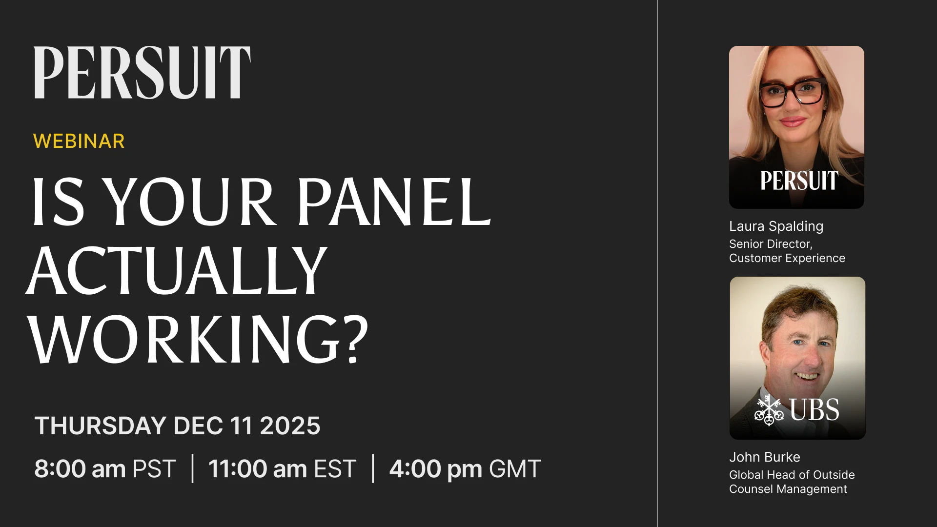 That’s why we’re hosting a webinar with John Burke, Head of Outside Counsel Management at UBS, and Laura Spalding, Head of Customer Experience, PERSUIT on Thursday, December 11, 2025.
